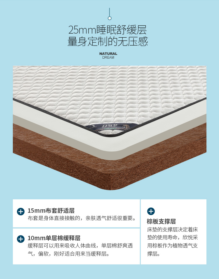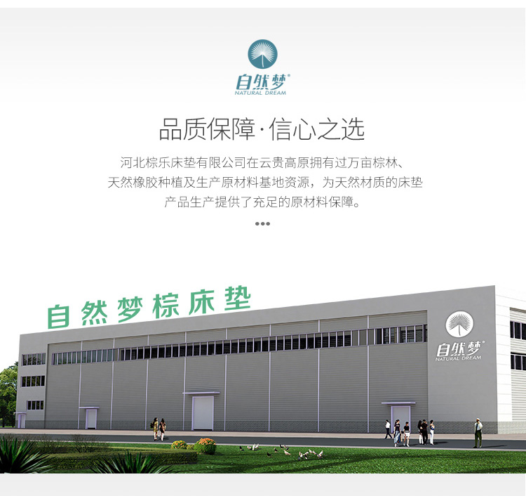 河北棕樂自然夢有限公司是一家生產(chǎn)銷售:山棕床墊、椰棕床墊的植物纖維彈性床墊企業(yè),擁有自動(dòng)化生產(chǎn)工藝、標(biāo)準(zhǔn)化廠房,專業(yè)技術(shù)人員層層把控生產(chǎn)環(huán)節(jié),致力于為消費(fèi)者打造強(qiáng)腰、護(hù)脊、易入睡的高品質(zhì)產(chǎn)品!